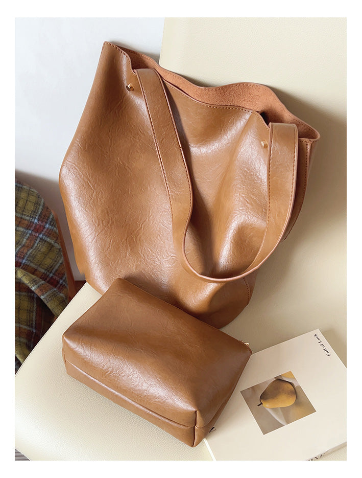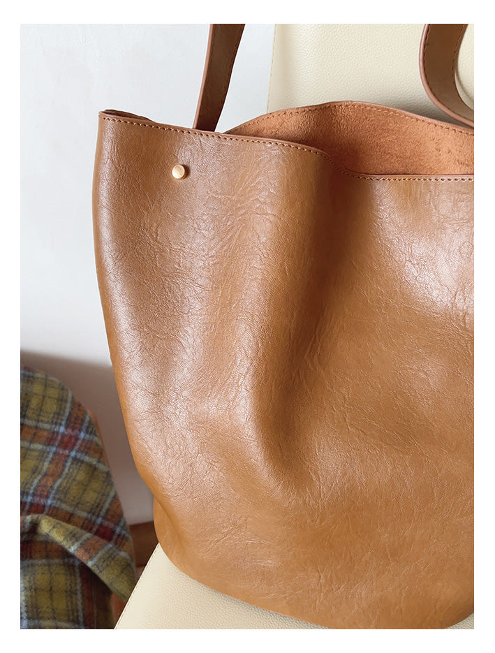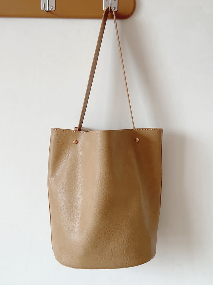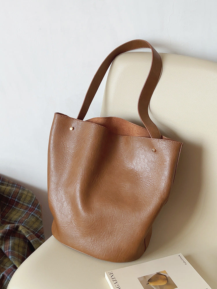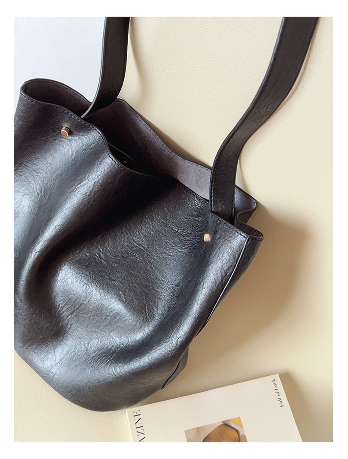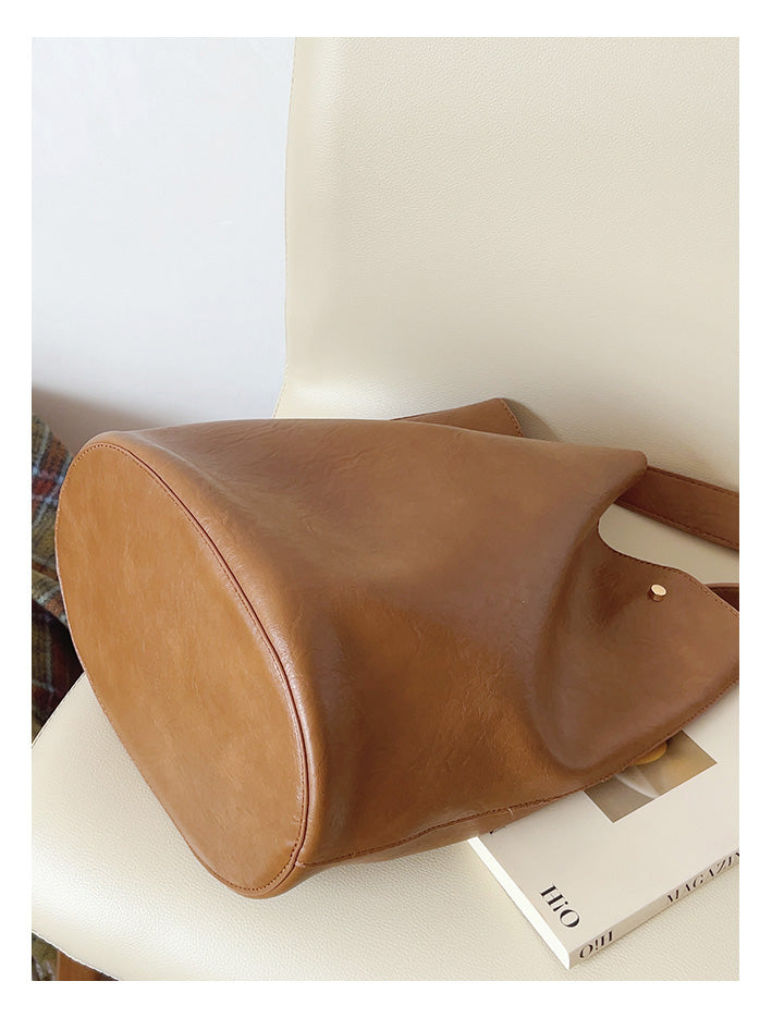 Chic Bucket Leather Bag with Shoulder Strap and Inner Pouch, Women's Everyday Handbag