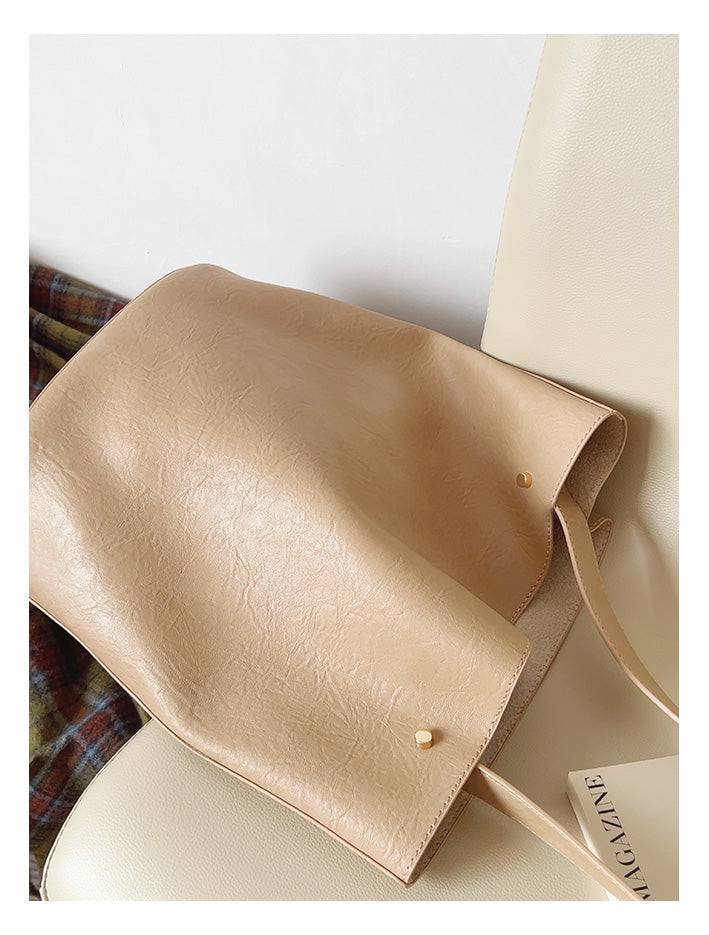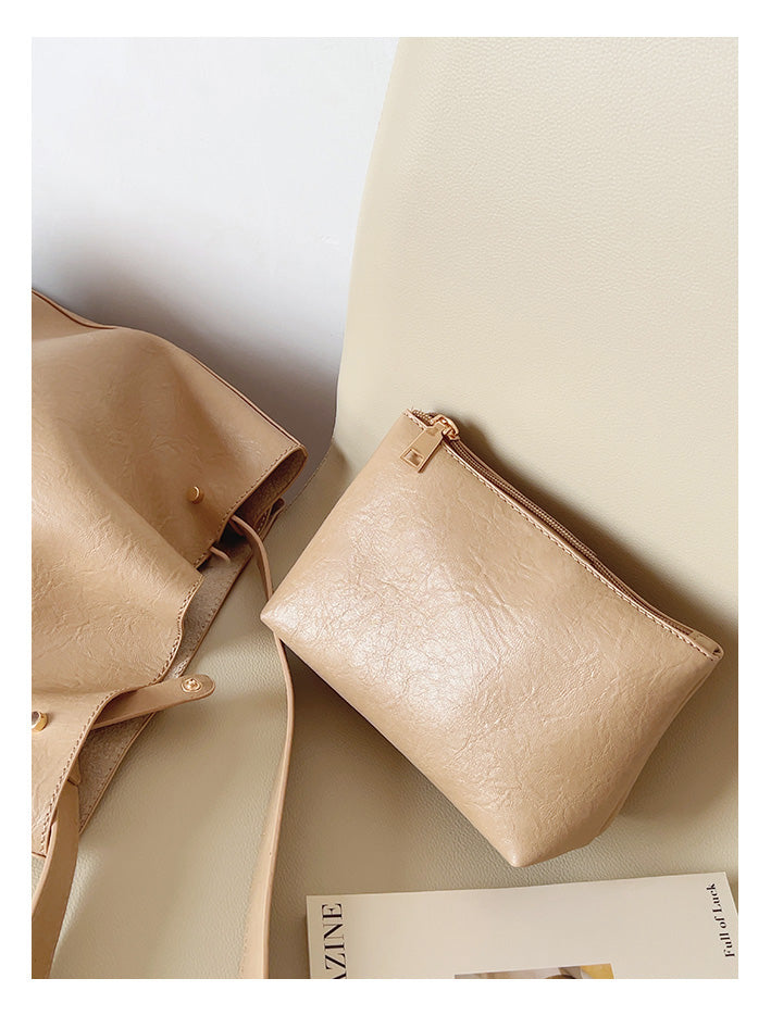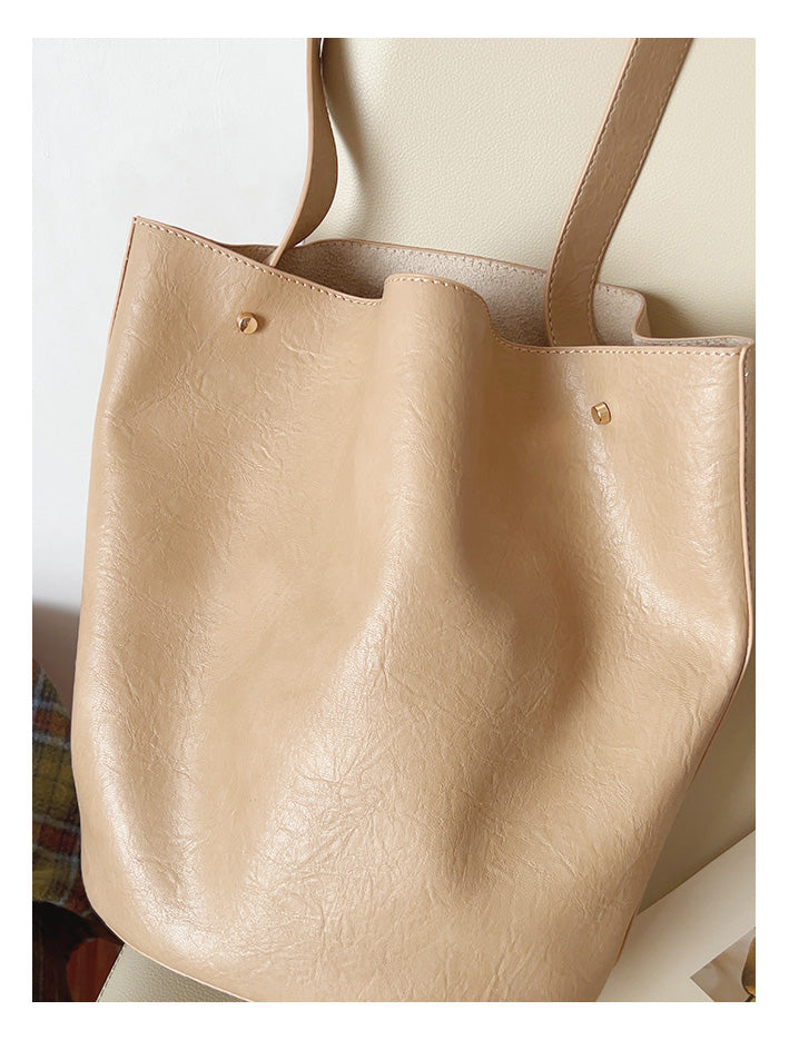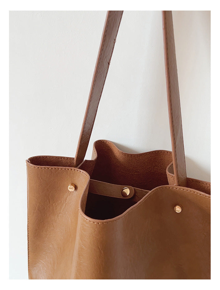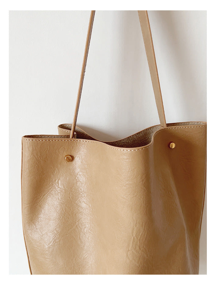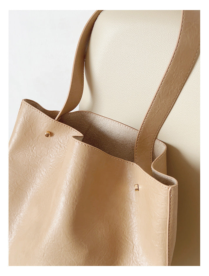 Chic Bucket Leather Bag with Shoulder Strap and Inner Pouch, Women's Everyday Handbag
