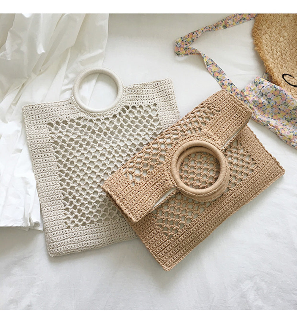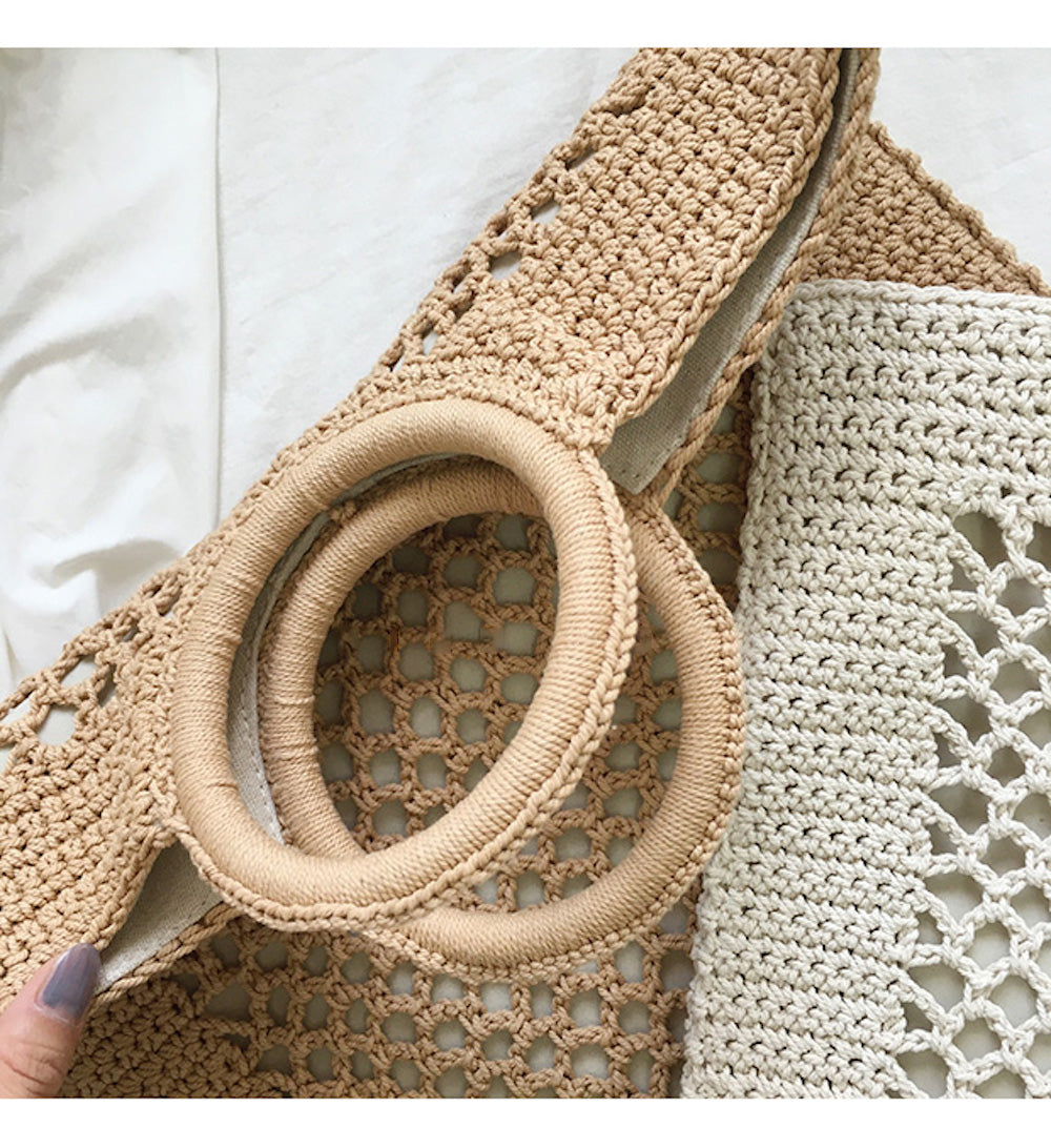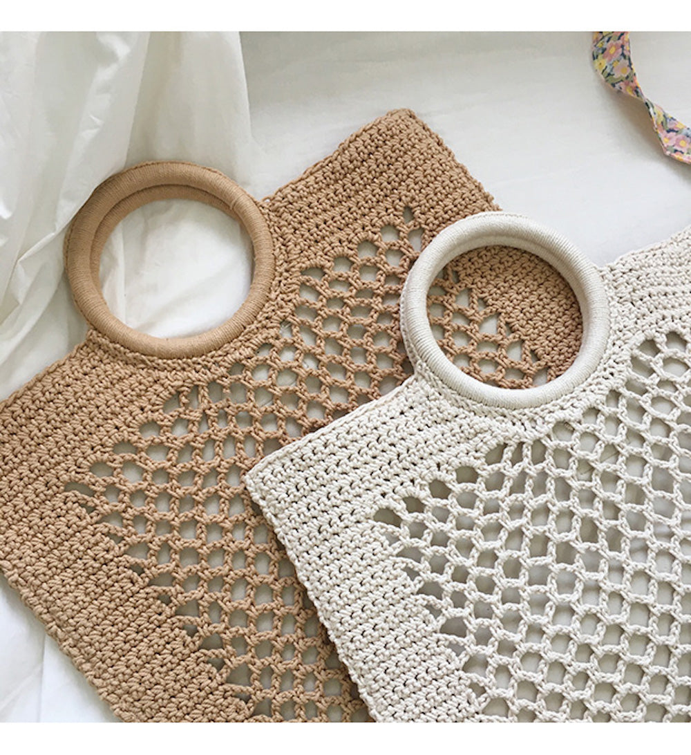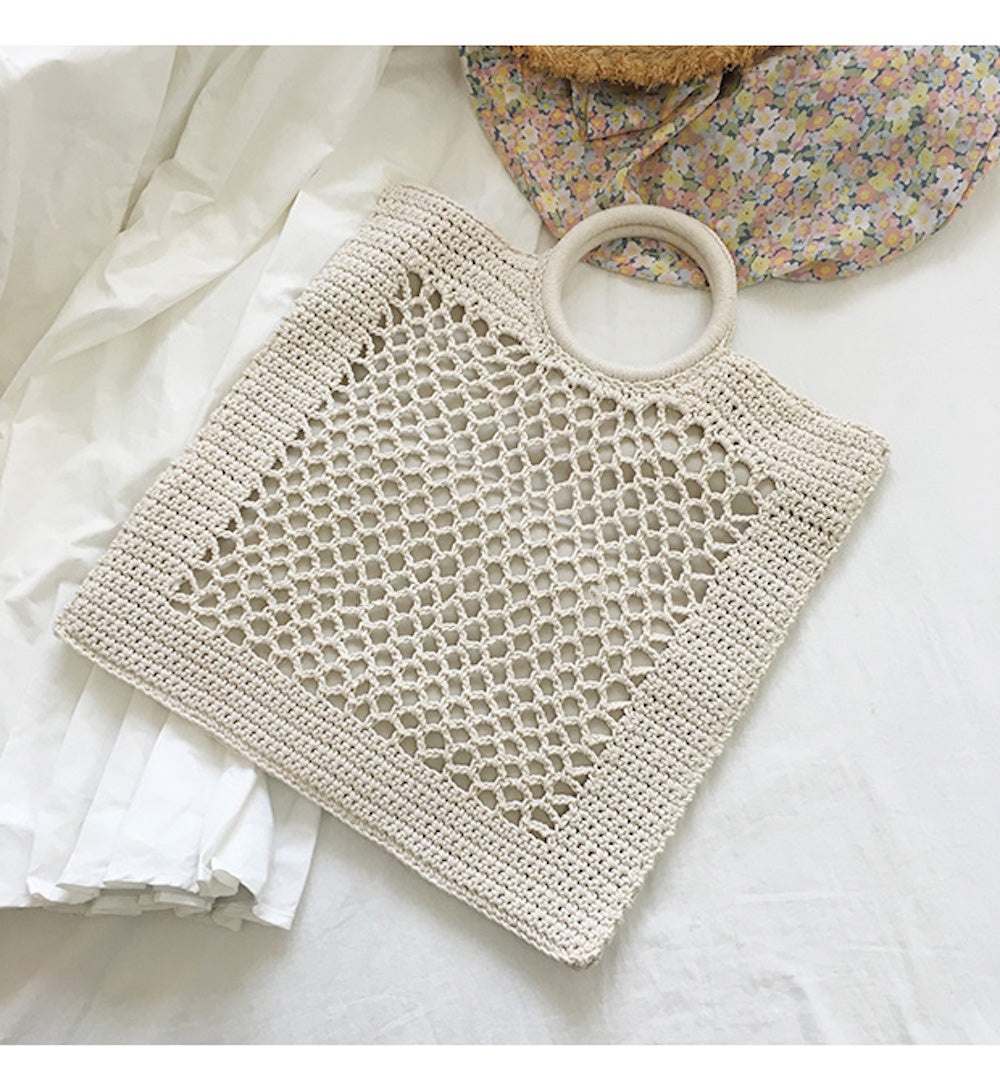 Handmade Crochet Large Cotton Knitted Top Handle Bag with Fishnet Design