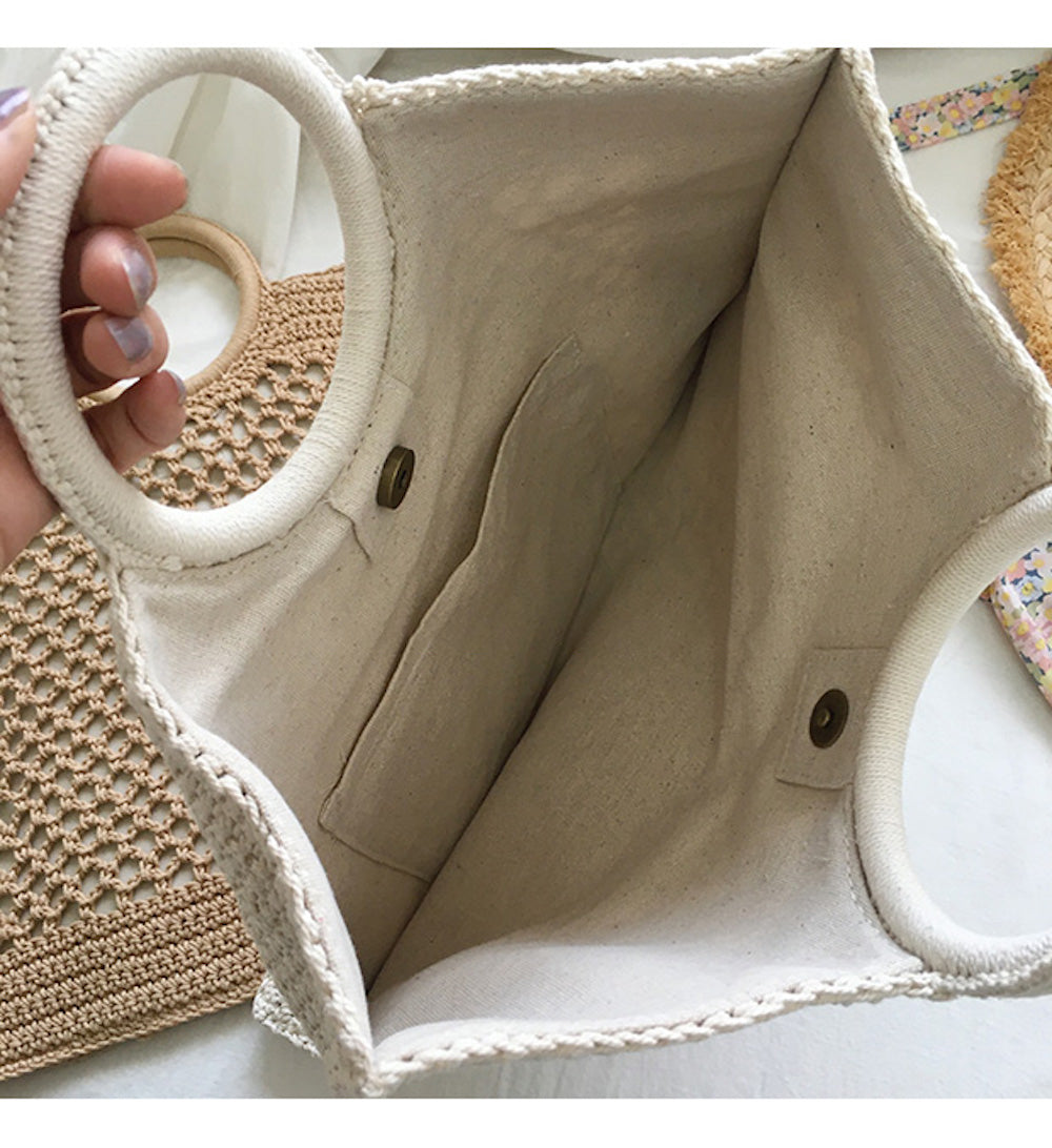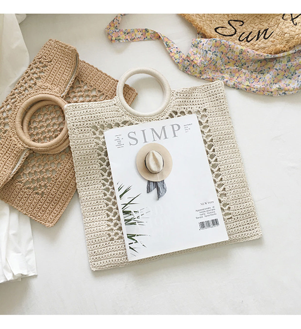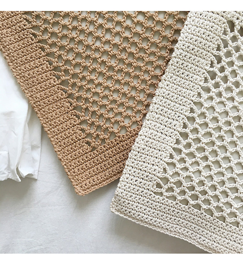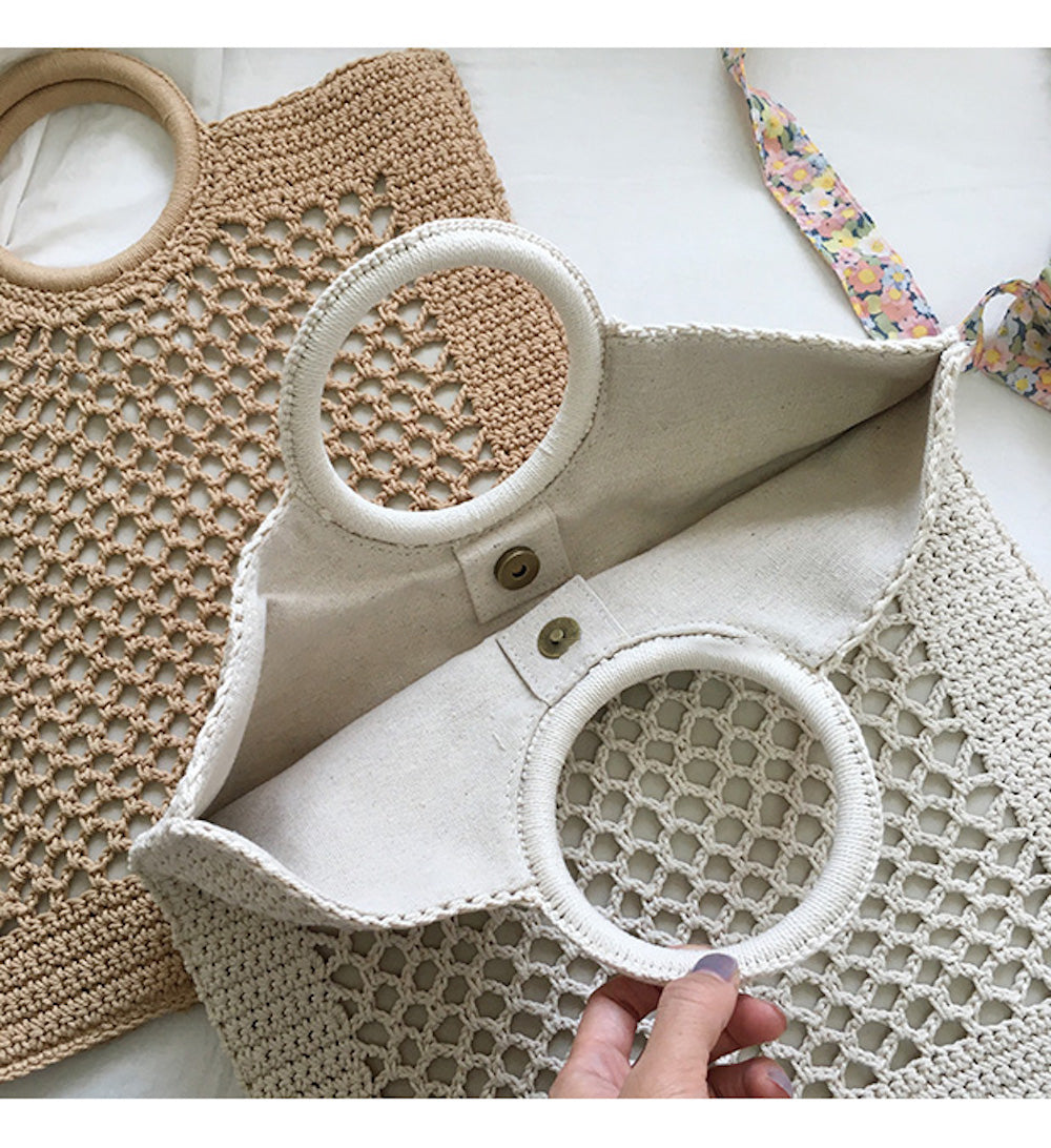 Handmade Crochet Large Cotton Knitted Top Handle Bag with Fishnet Design