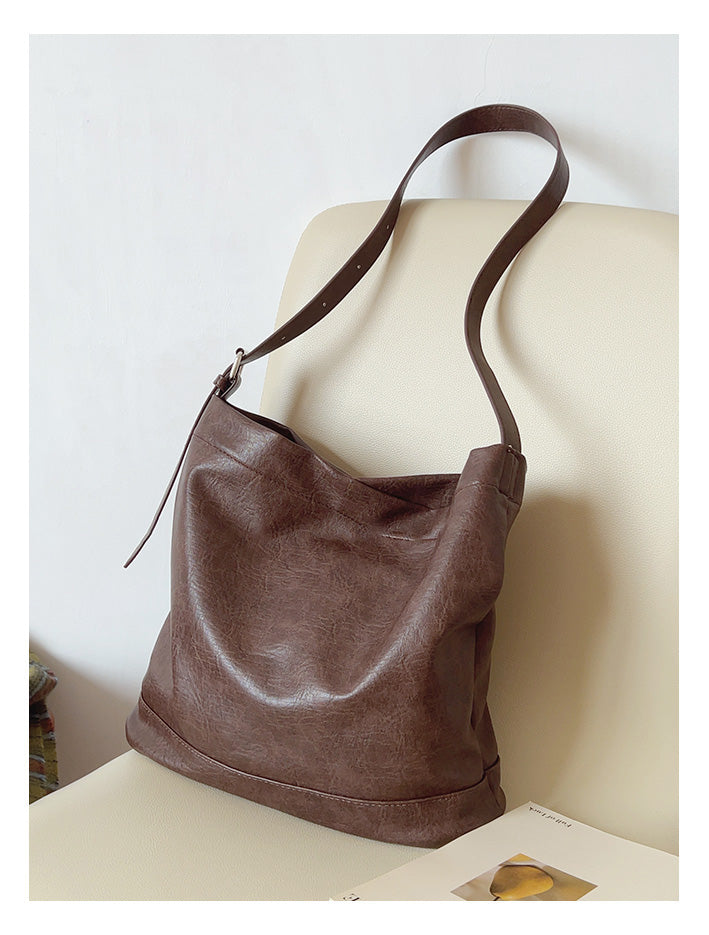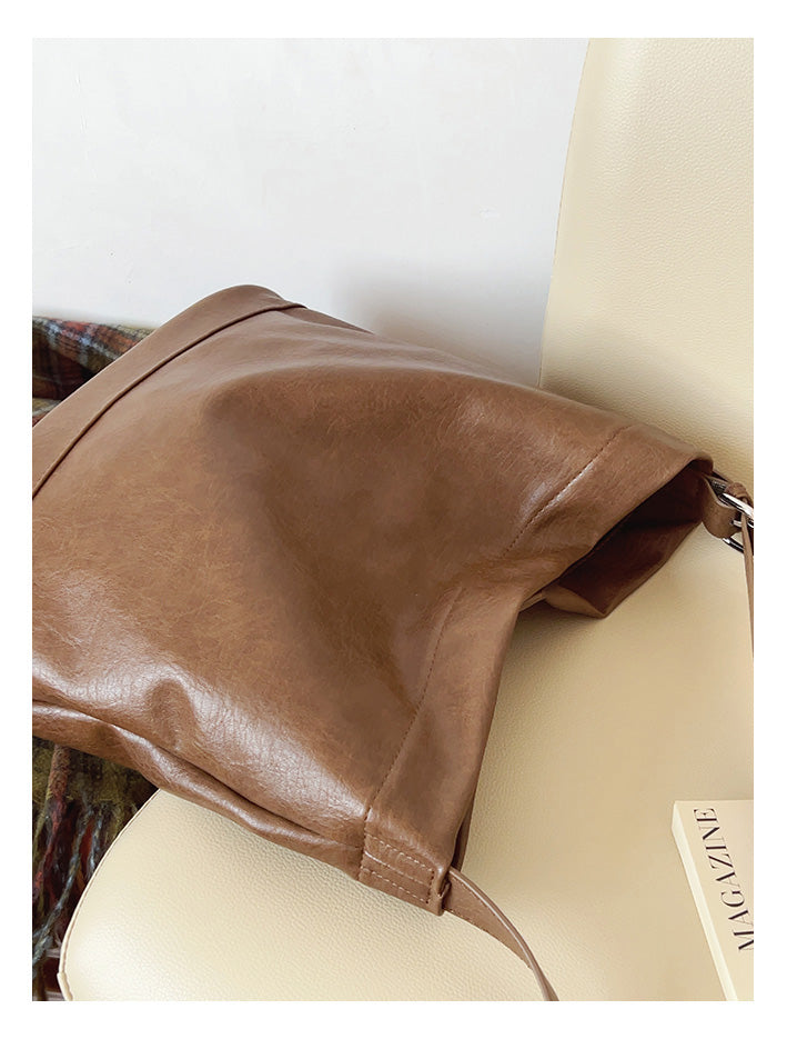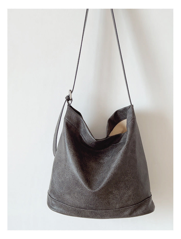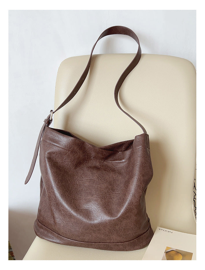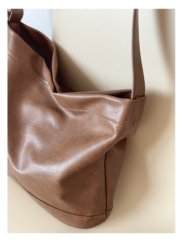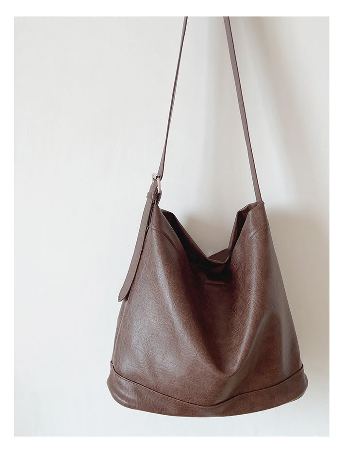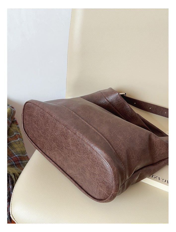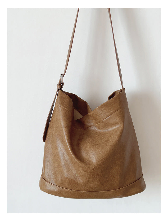 Retro Bucket Leather Bag with Shoulder Strap and Inner Pouch, Women's Everyday Handbag