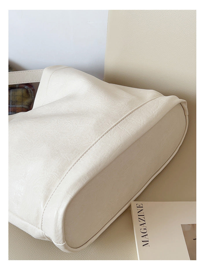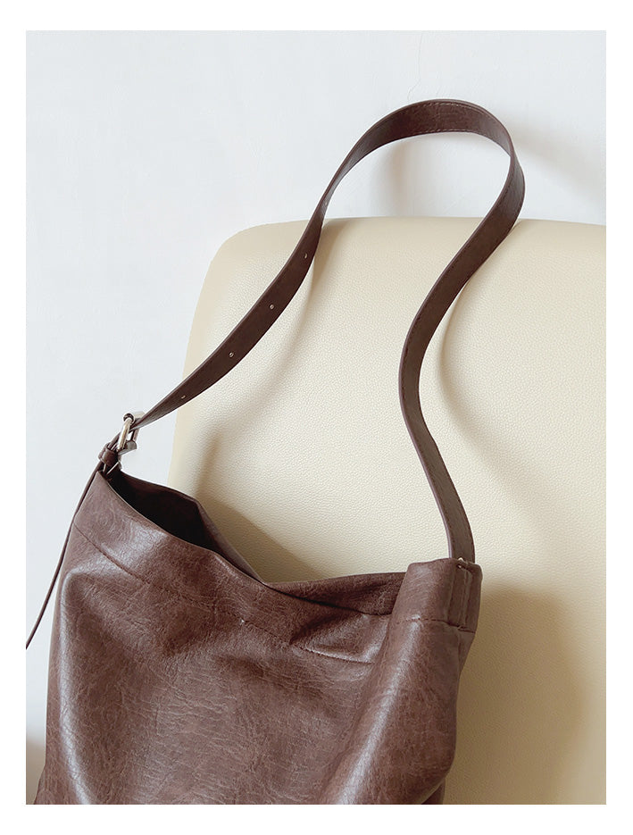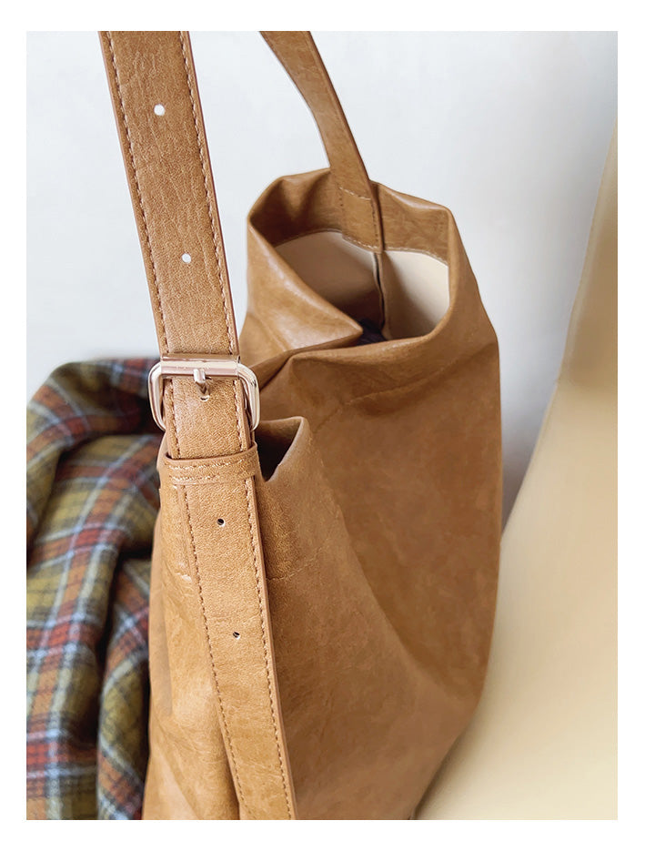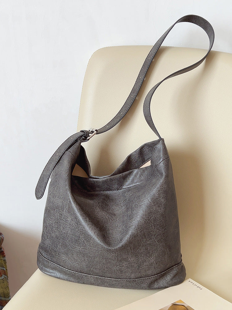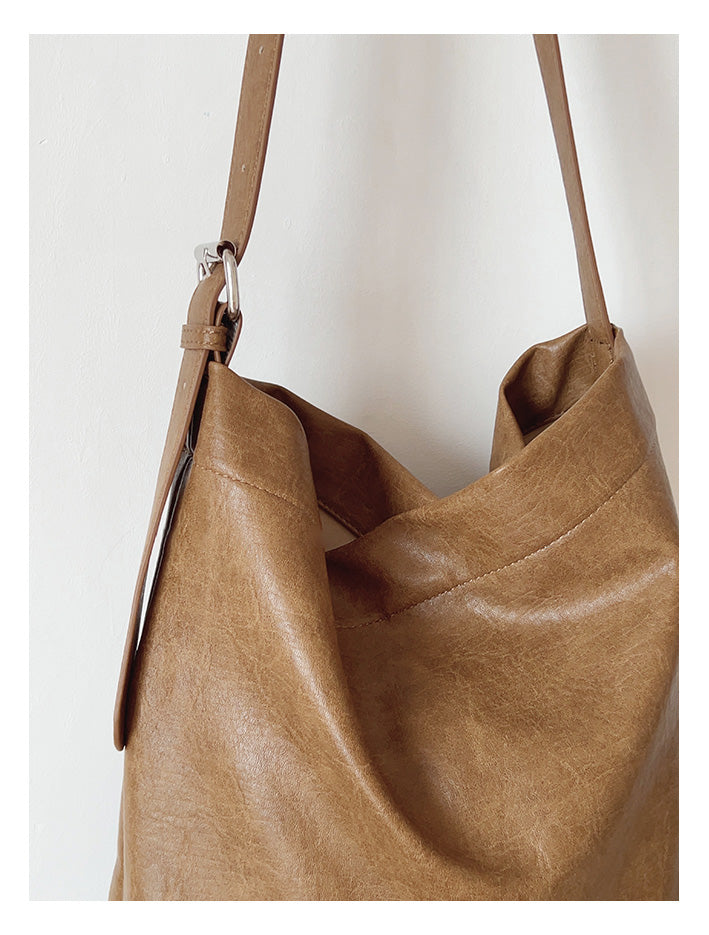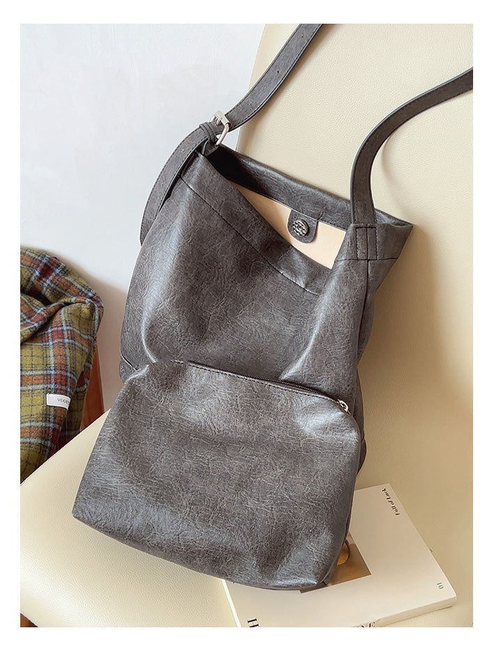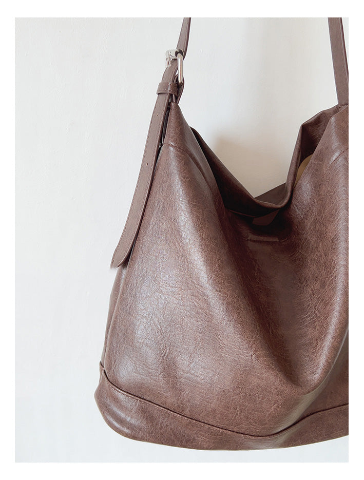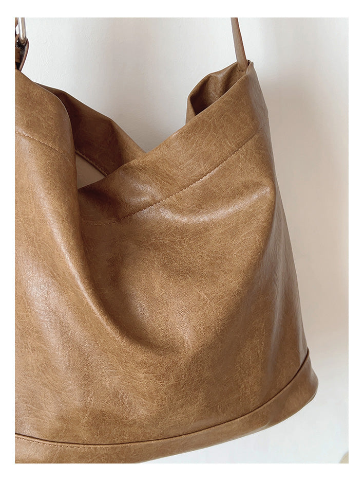 Retro Bucket Leather Bag with Shoulder Strap and Inner Pouch, Women's Everyday Handbag