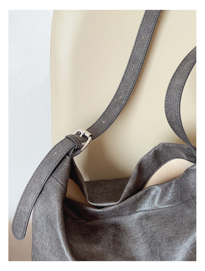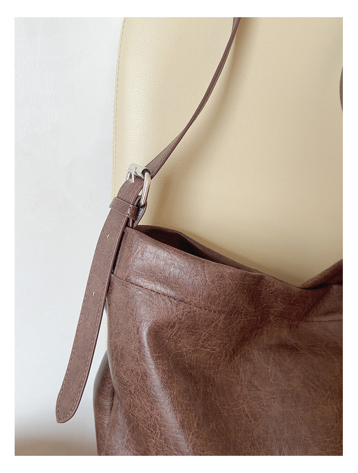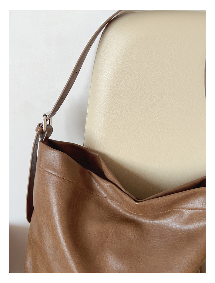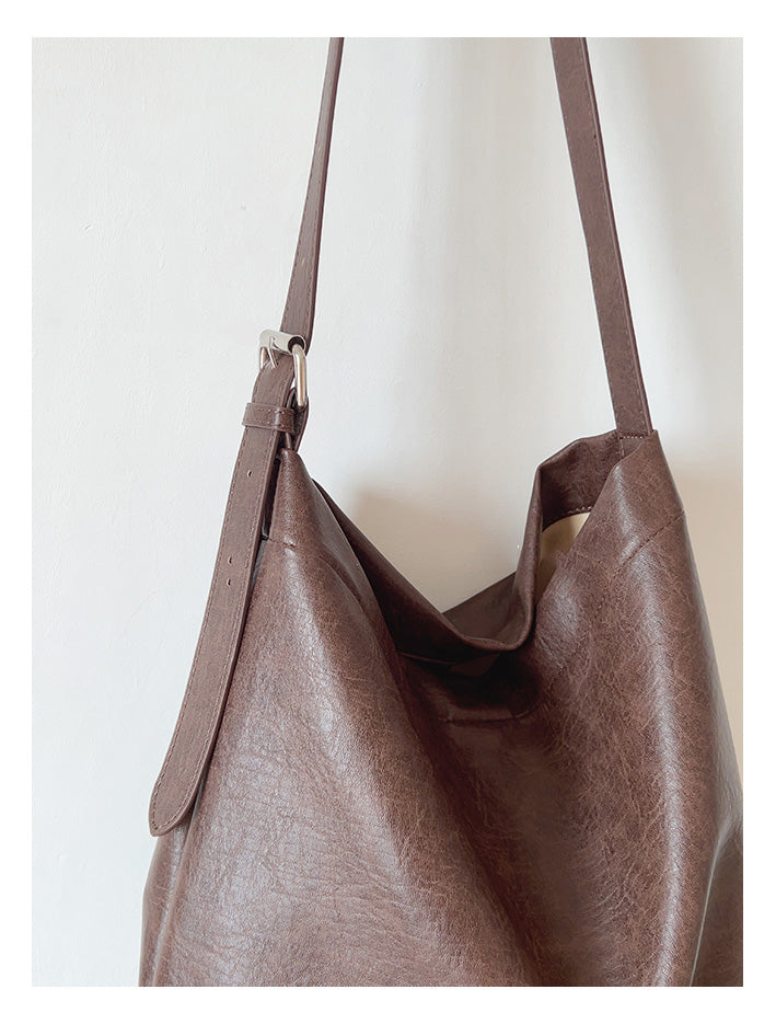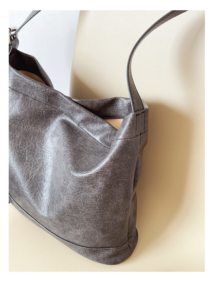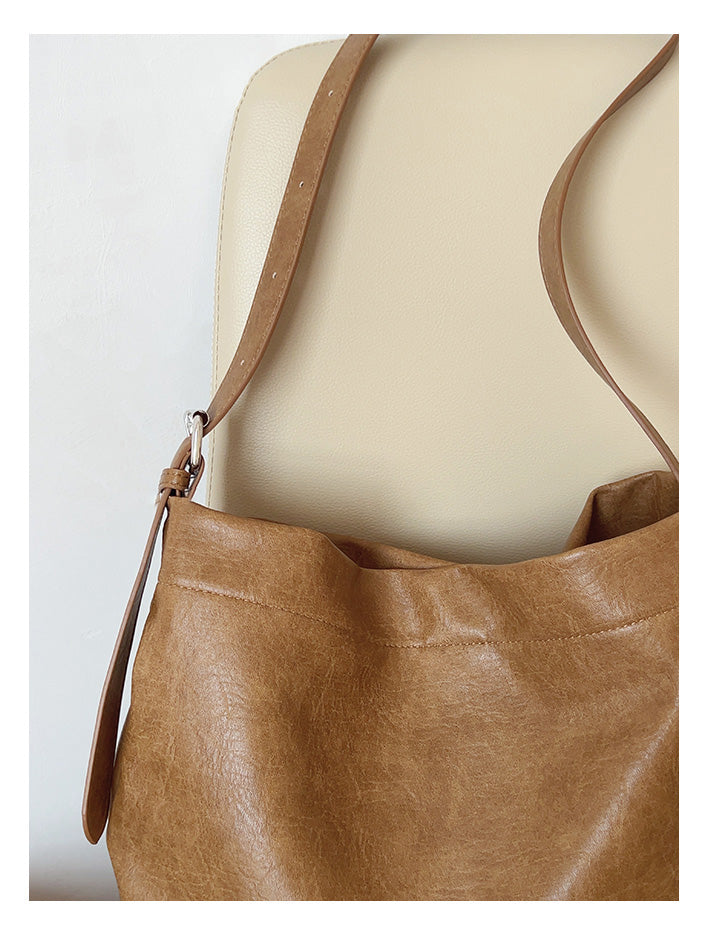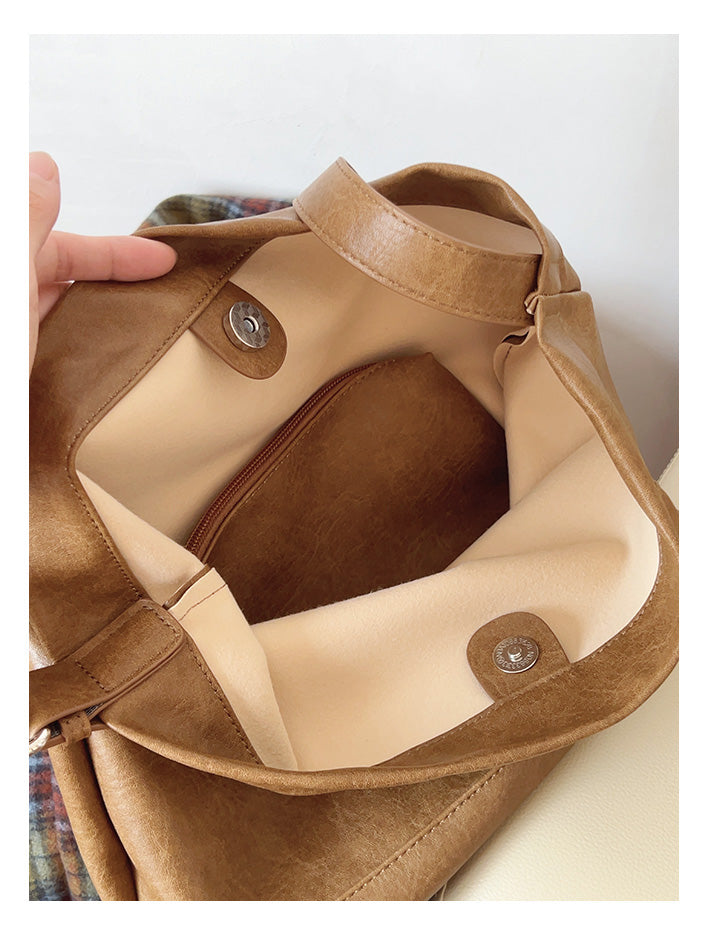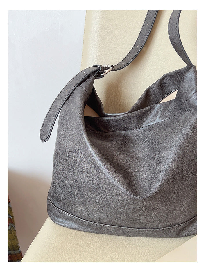 Retro Bucket Leather Bag with Shoulder Strap and Inner Pouch, Women's Everyday Handbag