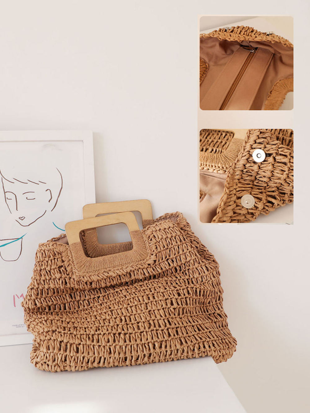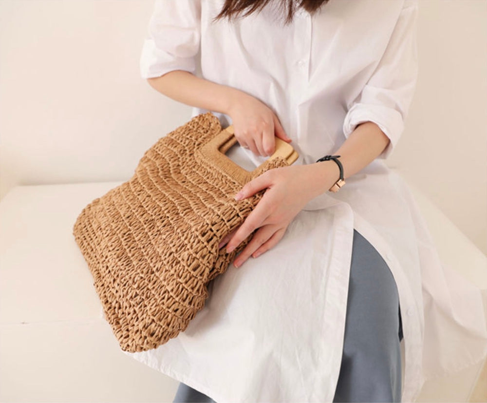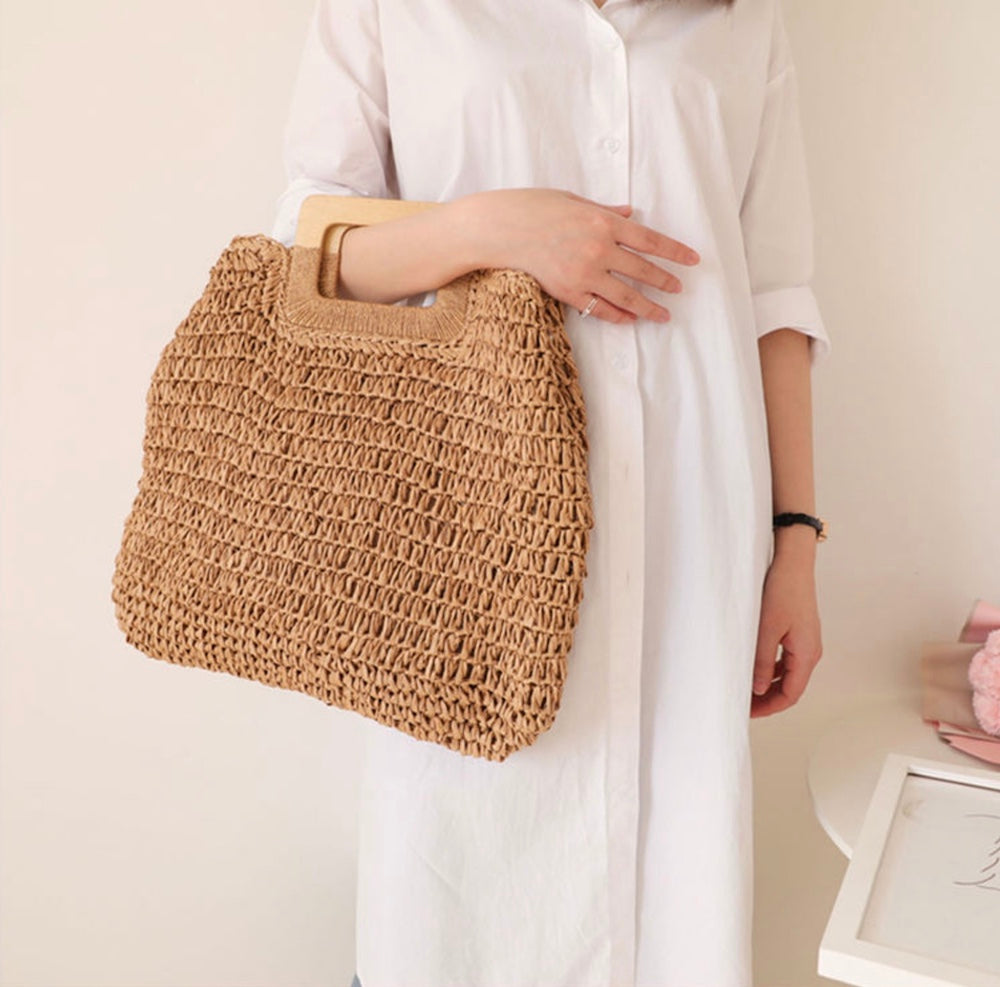 Harajuku Style Straw Woven Top Handle Tote Bag, Hand Woven, Fashion Casual Bag, Gift for Her, Women's Bag